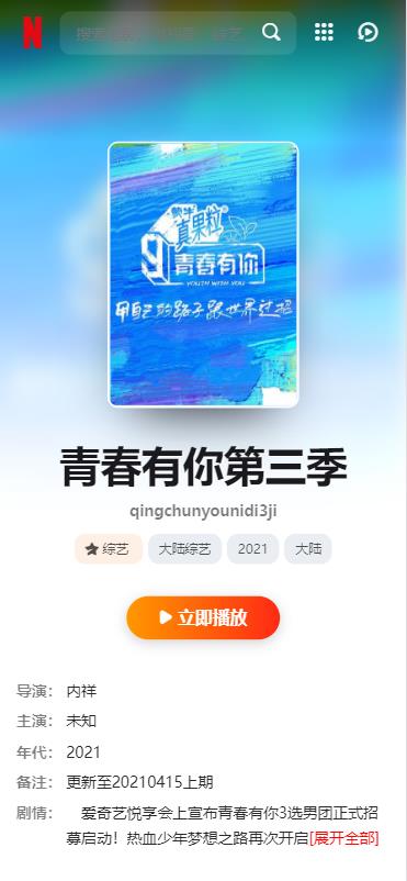 - 超大影片海报,营造沉浸式观影体验,极具视觉冲击力。